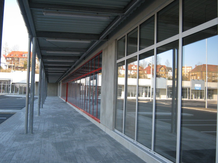 Project contais complete construction of a new shopping center object consisting of seven sales units. The building is constructed at the commercial center and a is directly connected to OC TESCO Aš. The work includes the construction of engineering networks and communications.